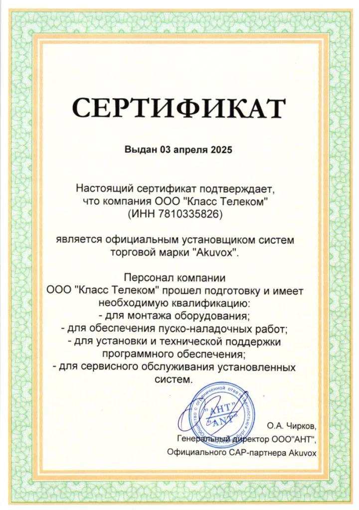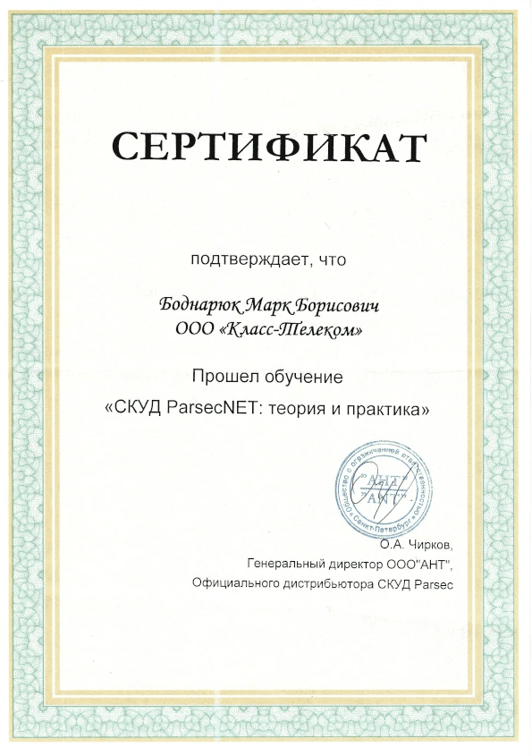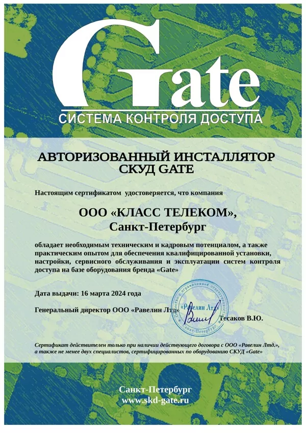 ООО «КЛАСС ТЕЛЕКОМ» является официальным авторизованным инсталлятором СКУД.
